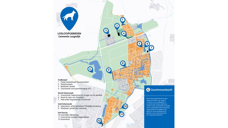 Via gemeentelangedijk.nl kunnen hondenbezitters zich aanmelden om een folder te ontvangen met alle aangewezen losloopgebieden.