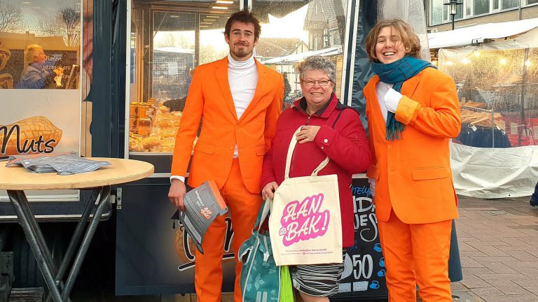 Maandagochtend konden marktbezoekers op het Raadhuisplein in Heerhugowaard zomaar mensen in oranje pakken tegenkomen. Deze opvallend geklede dame en heer lichtten in het kader van het afvalscheidingsproject 'Aan de bak' inwoners voor over afval en het scheiden daarvan. Binnenkort zijn ze nog drie keer te vinden in Heerhugowaard.