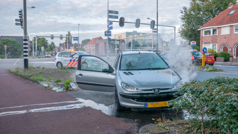 Waardoor de brand ontstond is onbekend. De geschrokken bestuurder en bijrijder zijn door de politie opgevangen. De auto is zwaar beschadigd.