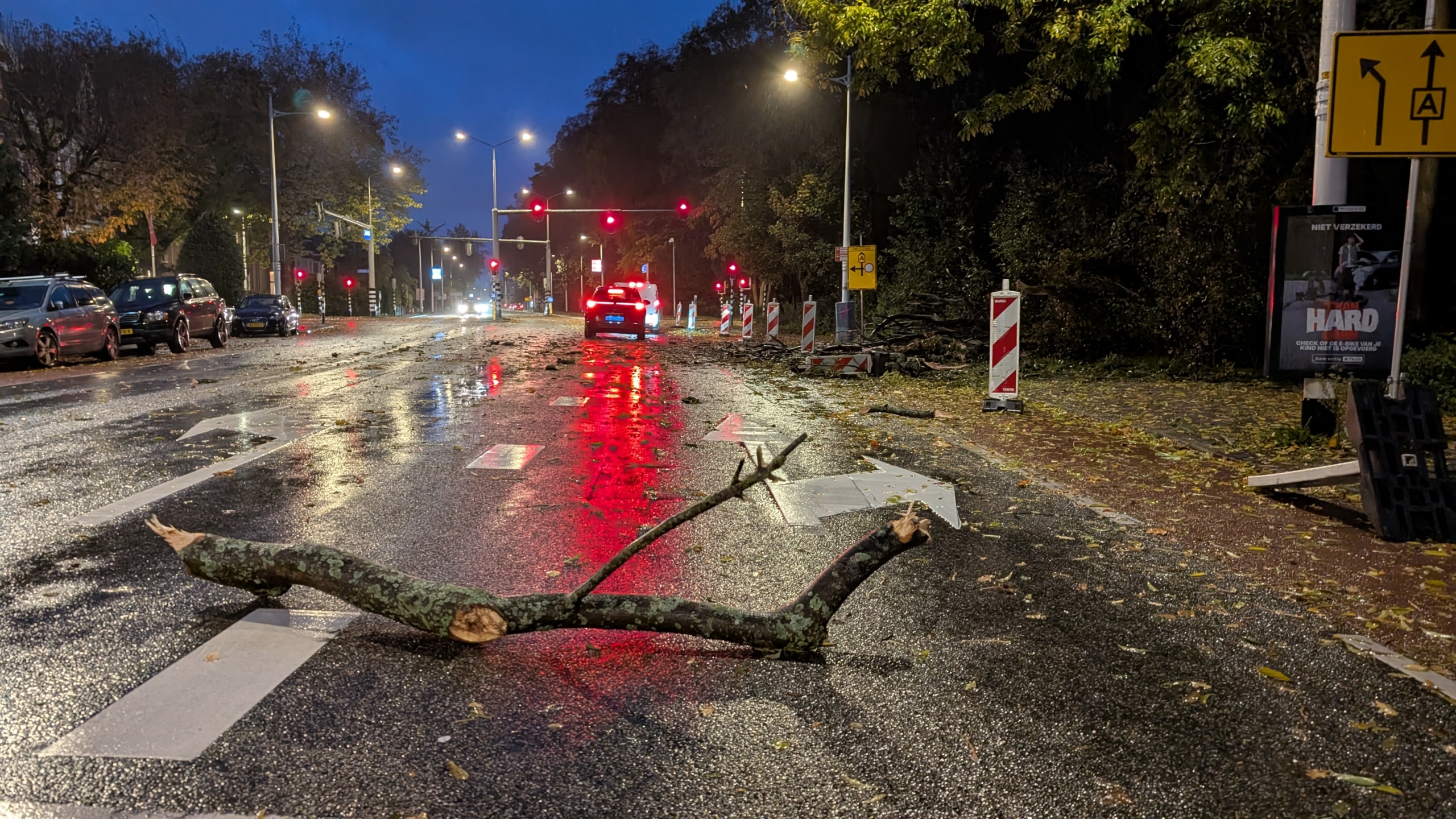 Met luid gekraak en een bonk die in huis nog te voelen is, ging tijdens storm Benjamin een boom om langs de Kennemerstraatweg in Alkmaar. De weg lag deels bezaaid met takken, maar geen enkele auto lijkt te zijn geraakt.Β