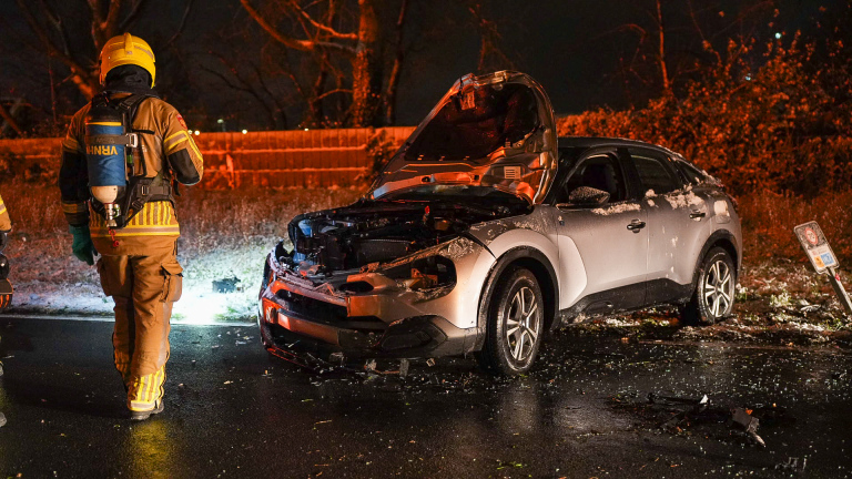 De brandweer is zondagochtend in alle vroegte uitgerukt voor een éénzijdig ongeval op de Huiswaarderweg (N245) in Alkmaar. Een automobiliste raakte door nog onbekende oorzaak van de weg en ramde daar een lantaarnpaal.