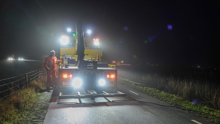 Een bergingsbedrijf heeft de auto met een lier weer op de weg gezet. Daarna kon de bestuurder zijn weg weer vervolgen. (foto's: RVP Media)